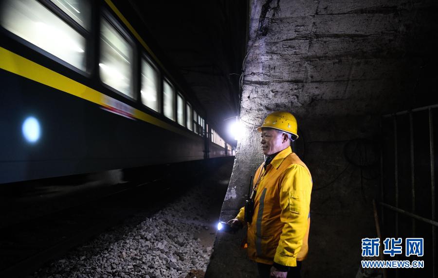 在廣西河池境內黔桂鐵路線上的鄧山隧道,中國鐵路南寧局集團有限公司柳州工務段的4名看守工輪換值班,依靠手電筒在黑暗中穿行,及時巡查隧道中可能出現的各種隱患,確保每天經隧道運行的59趟客貨列車春運安全。鄧山隧道全長773米,是一個需要人員全天候看守的鐵路隧道。