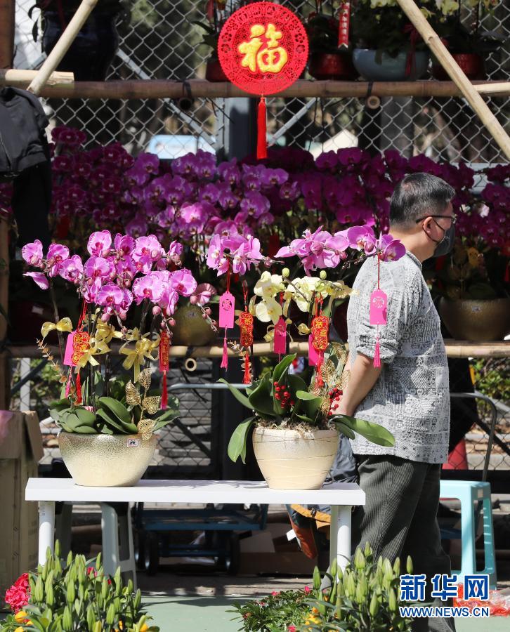 2月6日,市民在香港維多利亞公園的年花銷售點(diǎn)選購鮮花。新華社記者 李鋼 攝