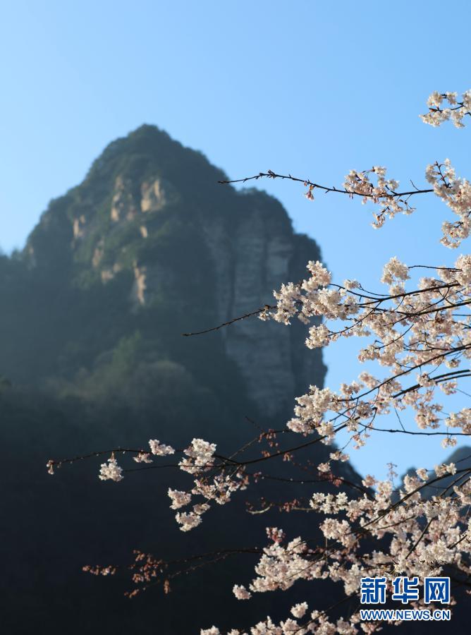 湖南張家界武陵源景區(qū)十里畫廊的櫻花競(jìng)相綻放(2月14日攝)。新華社發(fā)(吳勇兵 攝)