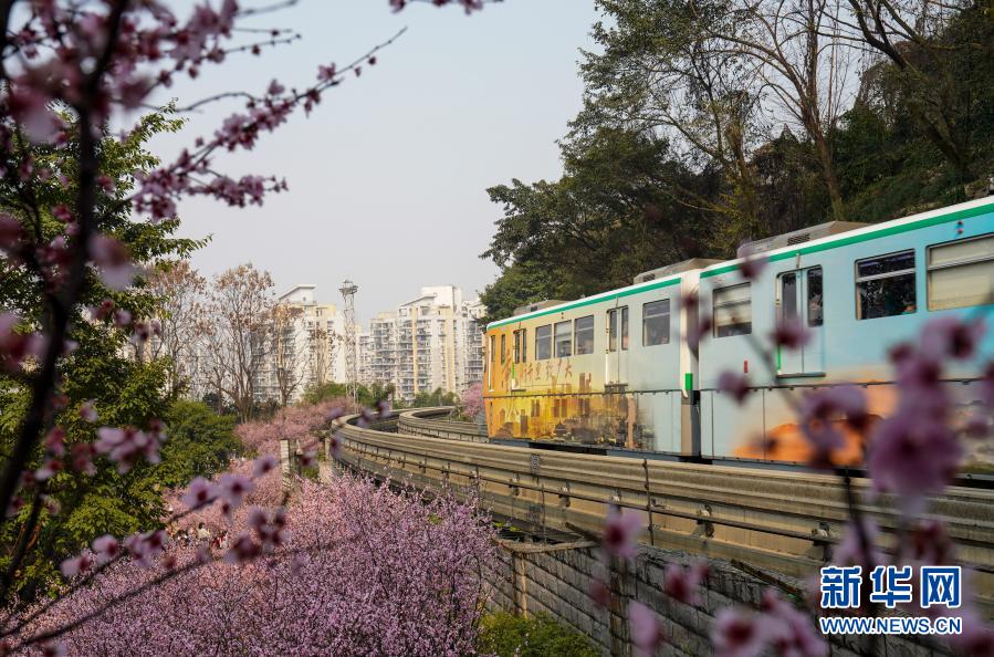 初春時節,重慶氣溫逐漸回暖,暖陽里的山城春意盎然。在重慶軌道交通2號線佛圖關段,山城步道上的梅花簇簇綻放,單軌列車穿越花海,組成一幅賞心悅目的獨特城市景觀。
