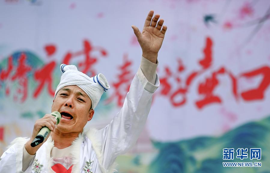 2月24日,歌手楊平安在陜西壺口瀑布景區為游客演唱陜西民歌。