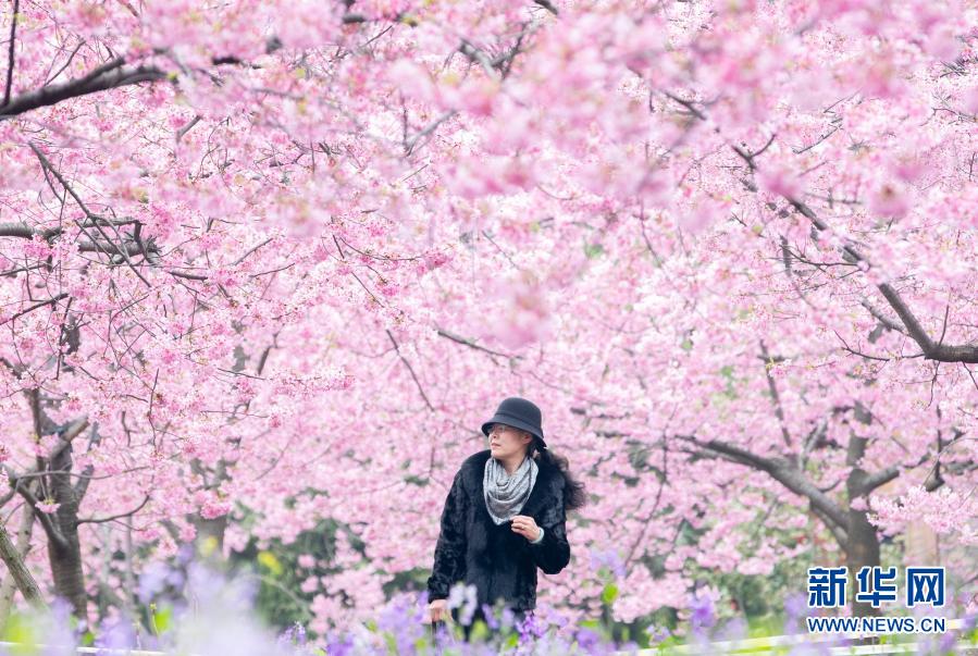 當日,武漢東湖櫻花園開園,東湖櫻花節同步舉辦。園內綻放的櫻花和文藝表演吸引游客前來賞花觀景,放松身心。