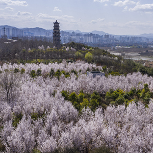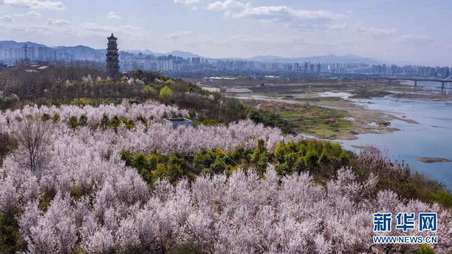 3月3日,漢江之畔的安康市城東新區鮮花盛開(無人機照片)。近日,秦巴山區的陜西省安康市春暖花開,市民紛紛走出戶外,徜徉花海,享受春光。新華社記者 陶明 攝