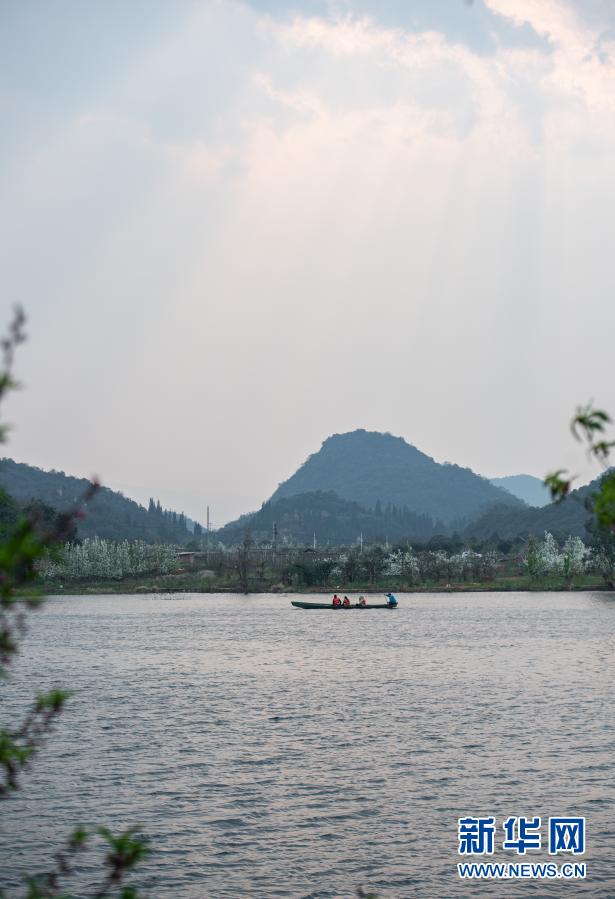 游人在普者黑國家濕地公園泛舟賞景(3月7日攝)。新華社記者 王冠森 攝