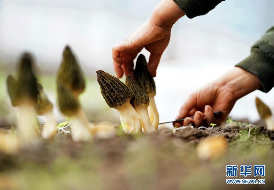 3月20日,河北省唐山市漢沽管理區農業總公司第九生產隊的農民在大棚內采收羊肚菌。