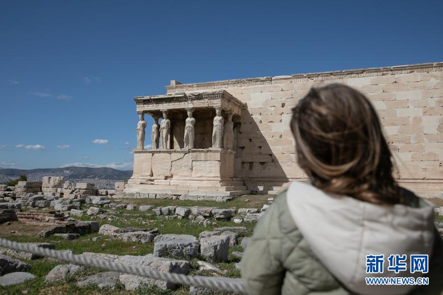 3月22日,一名游客游覽希臘雅典衛(wèi)城。希臘露天考古遺跡22日起恢復開放。游客需遵守保持社交距離和佩戴口罩等防疫規(guī)定。新華社發(fā)(萊夫特里斯·帕察里斯攝)