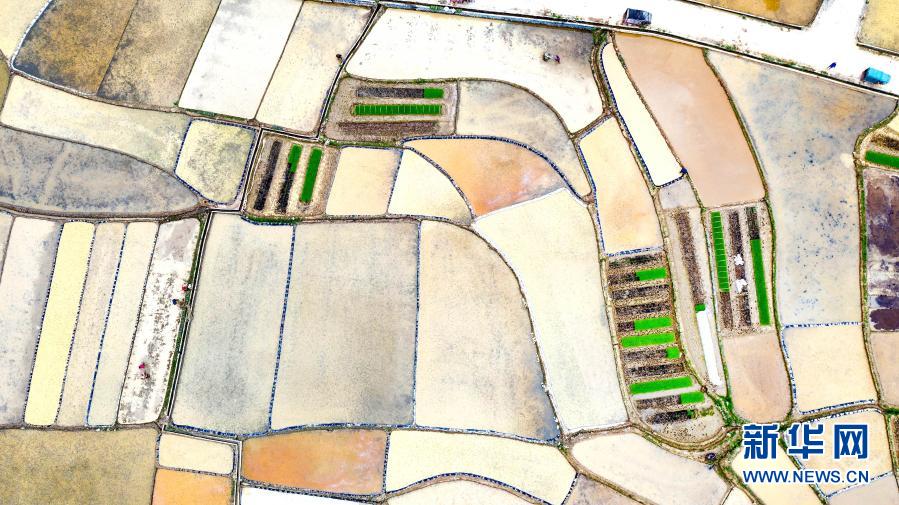3月24日,廣西河池市東蘭縣武篆鎮(zhèn)色故村農(nóng)民在田間勞作(無人機照片)。