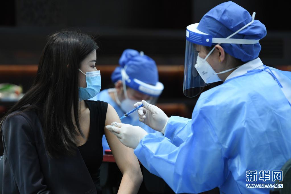 3月25日,醫(yī)務(wù)人員為一位企業(yè)員工接種新冠疫苗。