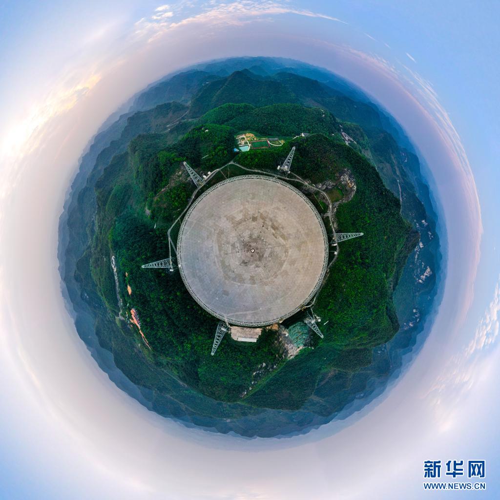 在貴州省平塘縣,被譽(yù)為“中國(guó)天眼”的500米口徑球面射電望遠(yuǎn)鏡(FAST)在群山中仰望星空,探求著宇宙奧秘。