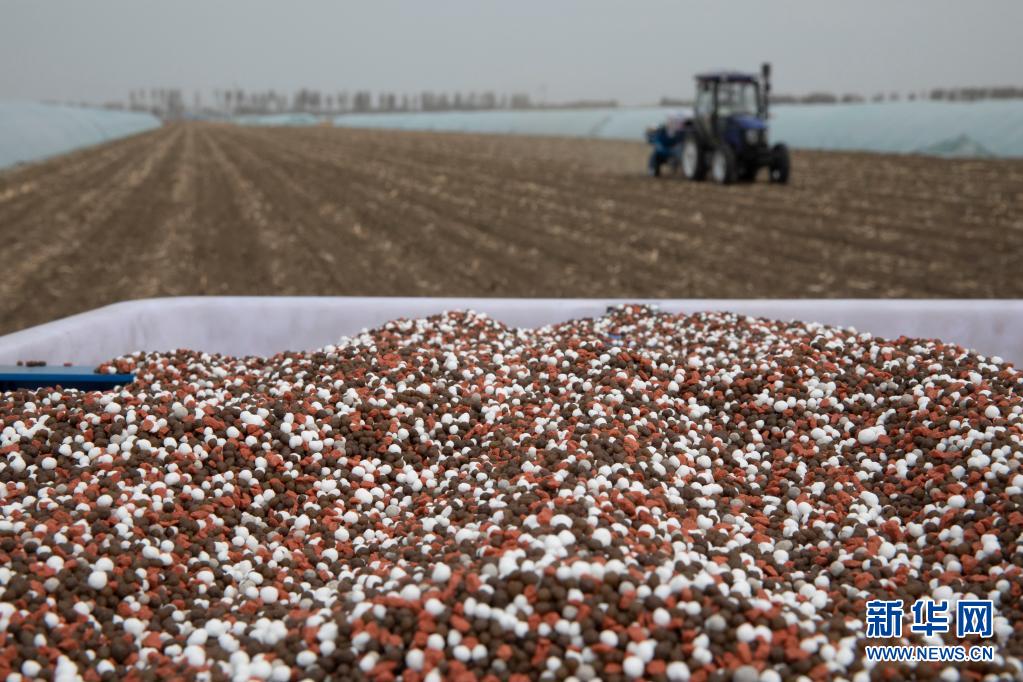4月22日,在黑龍江省大慶市肇州縣一處農田,農民在進行機械播種。新華社記者 張濤 攝