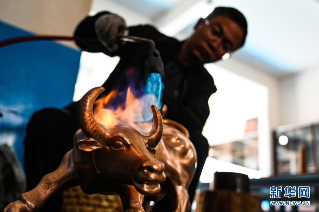 地處滇東北、烏蒙山腹地的云南會澤縣流傳著具有300多年歷史的斑銅制作工藝。斑銅工藝復雜,要采用高品位的銅為原料,經過20余道工序制作而成。產品“妙在有斑,貴在渾厚”,風格獨樹一幟。33歲的張偉是會澤“張氏斑銅”的第十三代傳人。自幼深受地域文化和家庭熏陶的他,大學畢業后,返鄉從事斑銅制作工作。在會澤古城的“銅匠街”,張偉創辦了斑銅傳習館,不斷研發斑銅新產品、傳承著這項非遺技藝。“斑銅是一種情感、一種文化,希望在我們這代人的努力下能夠更好地將它傳承下去,讓更多人了解斑銅的獨特魅力。”張偉說。