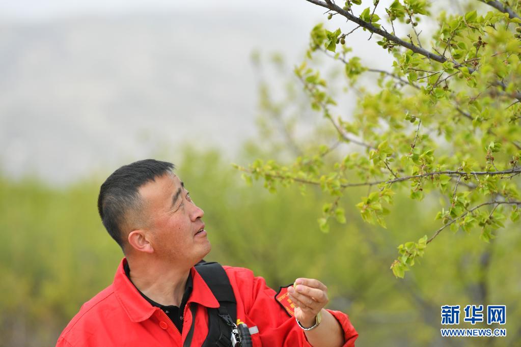 4月27日,巡線隊員張浩軍在巡線途中采摘野生水果補充體能。新華社記者 張博文 攝