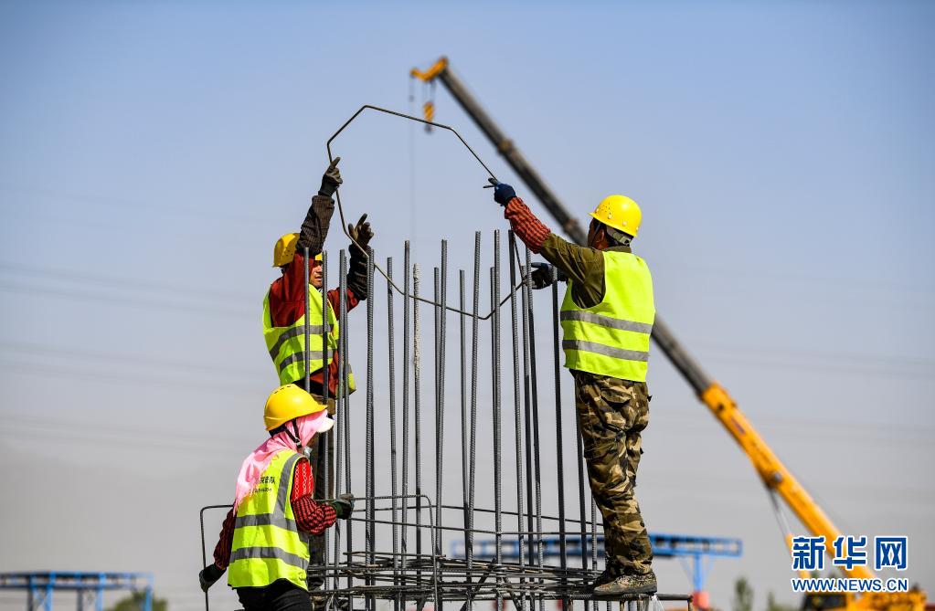 5月1日,寧夏銀川市經濟技術開發區中環50GW(G12)太陽能級單晶硅材料智慧工廠項目的工人在現場作業。