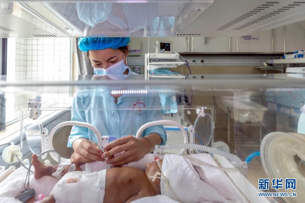 5月11日,護(hù)士在貴州省黔西市人民醫(yī)院新生兒科為患兒做晨間護(hù)理。