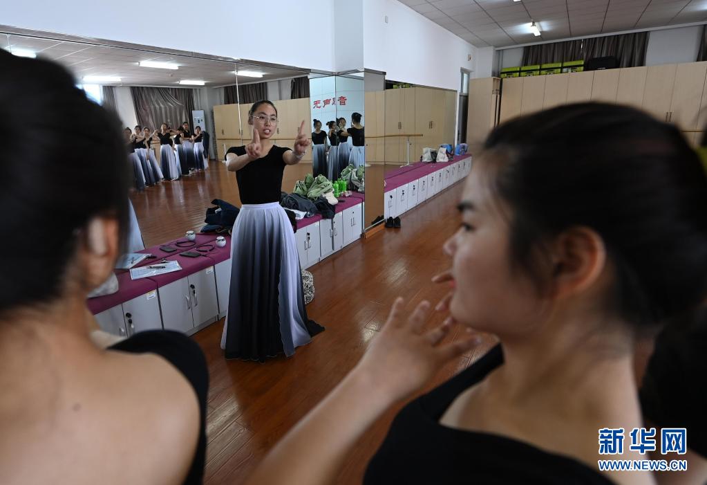 天津理工大學聾人工學院的舞蹈隊員們在學院的排練廳里練習(5月8日攝)。新華社記者 李然 攝