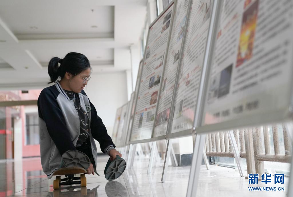 16歲的蔣張子怡是江西上饒中學高中一年級的學生。2010年一場車禍奪去了她的雙腿,如今的她只能依靠滑板代步,用雙手前行,為此,大伙都稱她“滑板姑娘”。