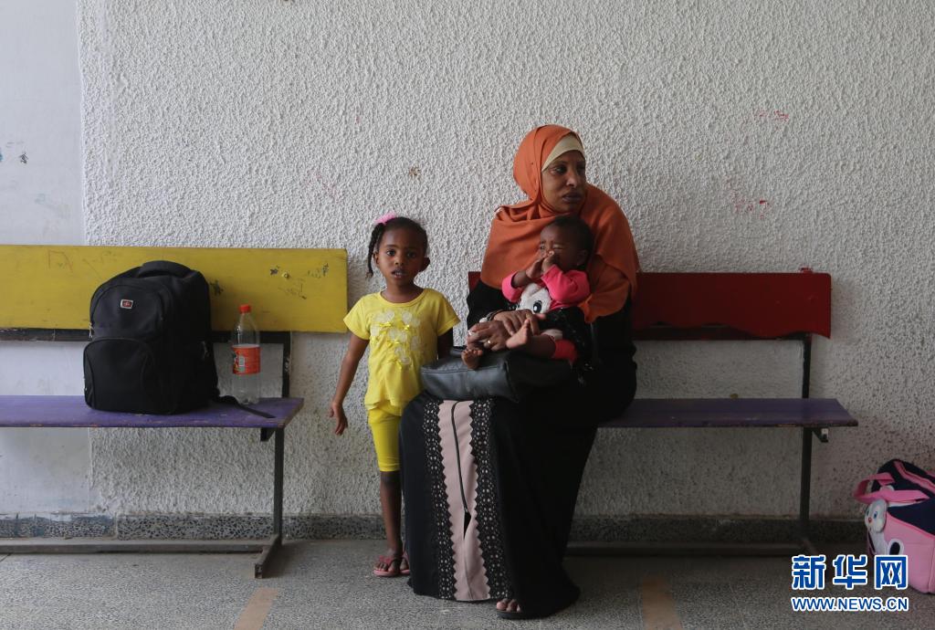 5月17日,受巴以沖突影響而逃離家園的巴勒斯坦婦女和兒童在加沙地帶拉法的一所學校臨時棲身。