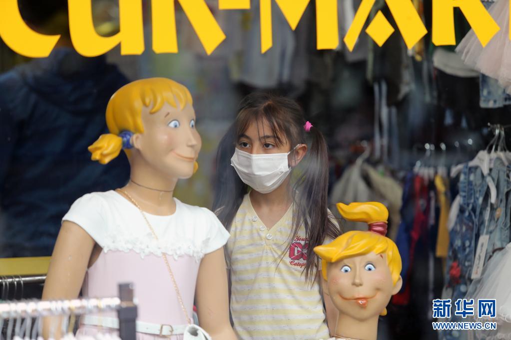 5月17日,一名女孩站在土耳其安卡拉一家服裝店內。