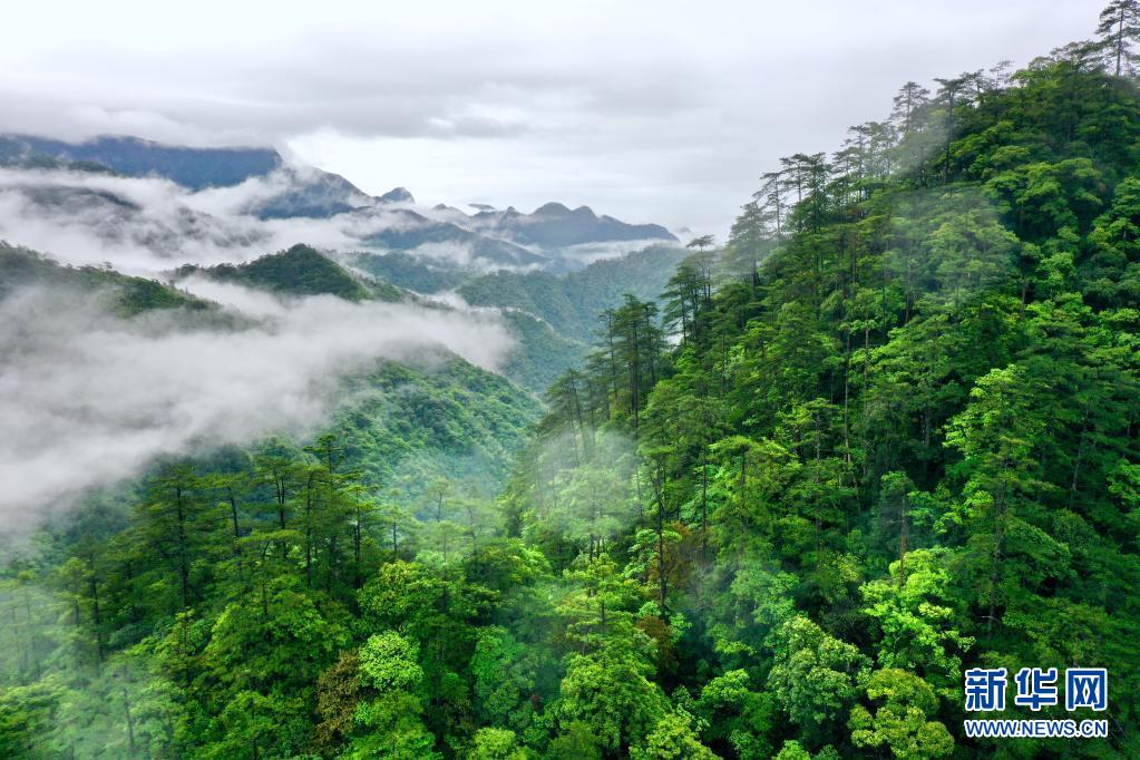 5月17日,武夷山國家公園桐木村附近群山云霧繚繞(無人機照片)。