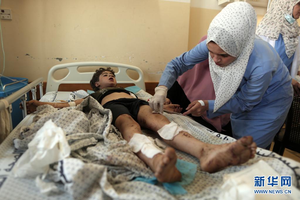 5月20日,一名因空襲受傷的巴勒斯坦兒童在加沙地帶城市汗尤尼斯的醫院中接受治療。