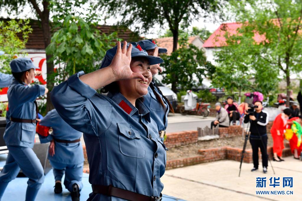 5月21日,在棗莊市臺兒莊區馬蘭屯鎮西張莊村,“學黨史惠民”文藝小分隊為群眾表演節目。