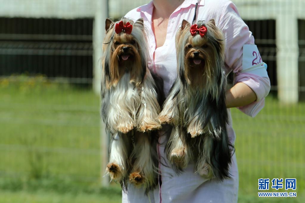 5月23日,兩只寵物犬在羅馬尼亞首都布加勒斯特參加選美比賽。新華社發(fā)(克里斯泰爾攝)