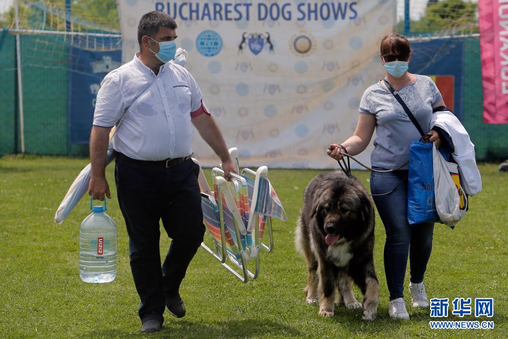 5月23日,一只寵物犬在羅馬尼亞首都布加勒斯特參加選美比賽后隨主人離開。新華社發(fā)(克里斯泰爾攝)