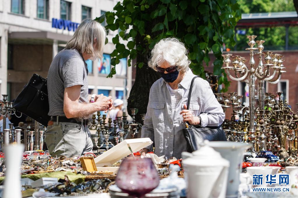 6月6日,人們在德國首都柏林的一處“跳蚤市場”內購物。