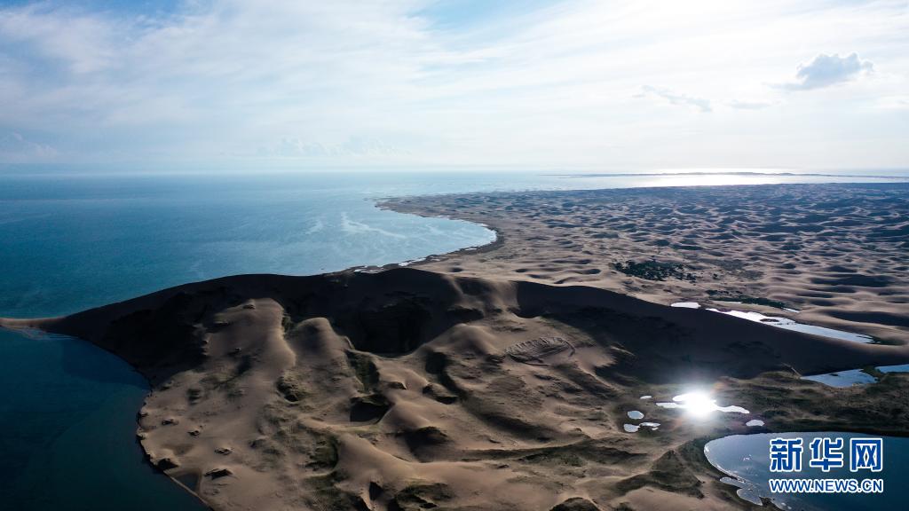 這是2020年7月28日拍攝的青海湖沙島一隅(無(wú)人機(jī)照片)。