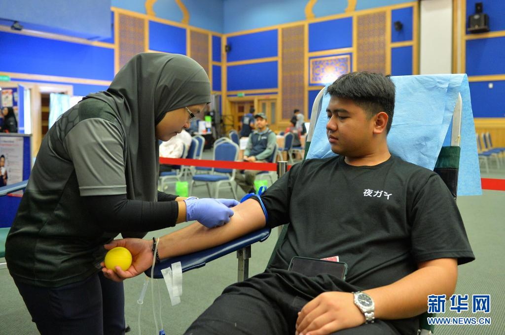 6月14日,一名男子在文萊斯里巴加灣市參與無償獻(xiàn)血活動。