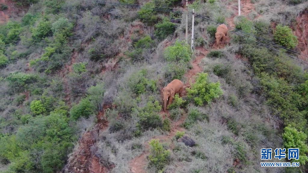 6月15日在玉溪市易門縣十街鄉拍攝的象群(無人機照片)。新華社發(云南省森林消防總隊供圖)