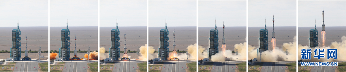 6月17日,搭載著神舟十二號載人飛船的長征二號F遙十二運載火箭在酒泉衛星發射中心點火升空。新華社記者 李剛 攝