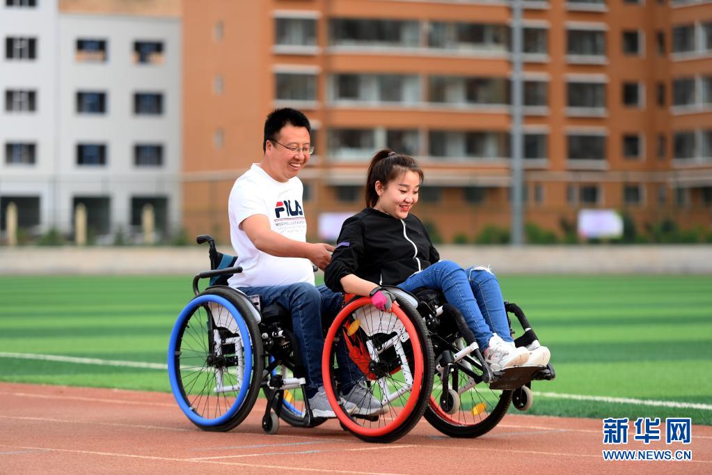 在山西省呂梁市石樓縣體育中心,關美(右)和周海云在進行康復訓練(6月2日攝)。新華社發(劉亮亮攝)