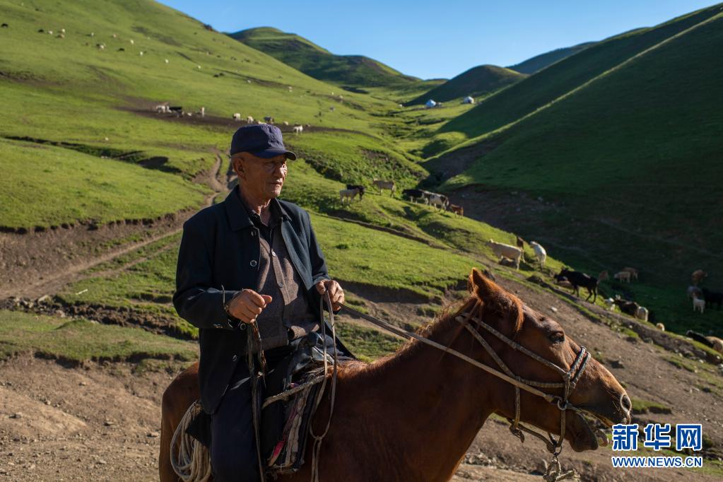 新疆裕民縣的牧民在巴爾魯克山區夏牧場上放牧(6月15日攝)。