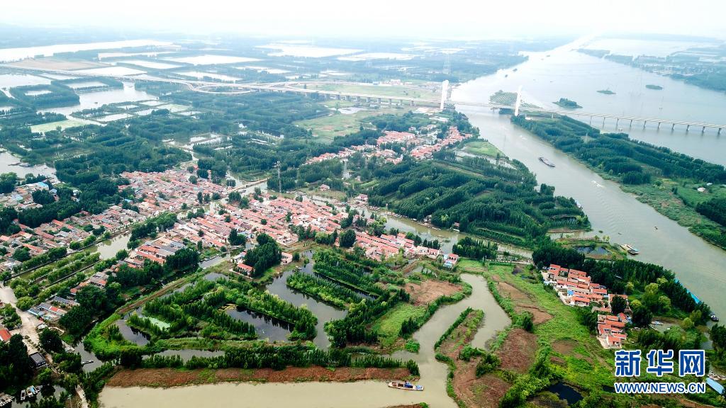 這是郵遞員王少朋服務的微山縣南陽鎮一角,南陽鎮四面環水,交通不便(6月20日攝,無人機照片)。
