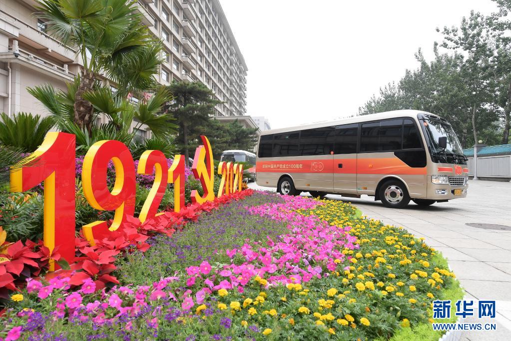 6月29日,慶祝中國共產(chǎn)黨成立100周年“七一勛章”頒授儀式在北京人民大會堂金色大廳隆重舉行。這是“七一勛章”獲得者集體乘坐禮賓車從住地出發(fā),前往人民大會堂。新華社記者 李賀 攝