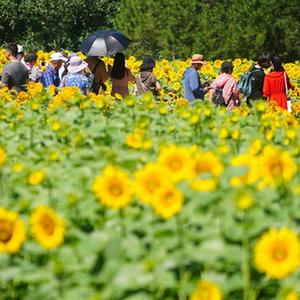 日前,北京奧林匹克森林公園北園的向日葵進(jìn)入盛花期,眾多市民和游客前來(lái)觀賞。
