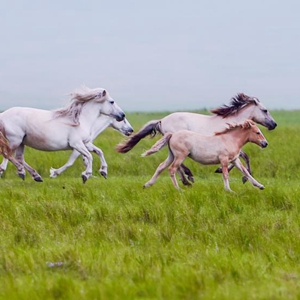7月12日,馬群在錫林郭勒大草原上奔跑。