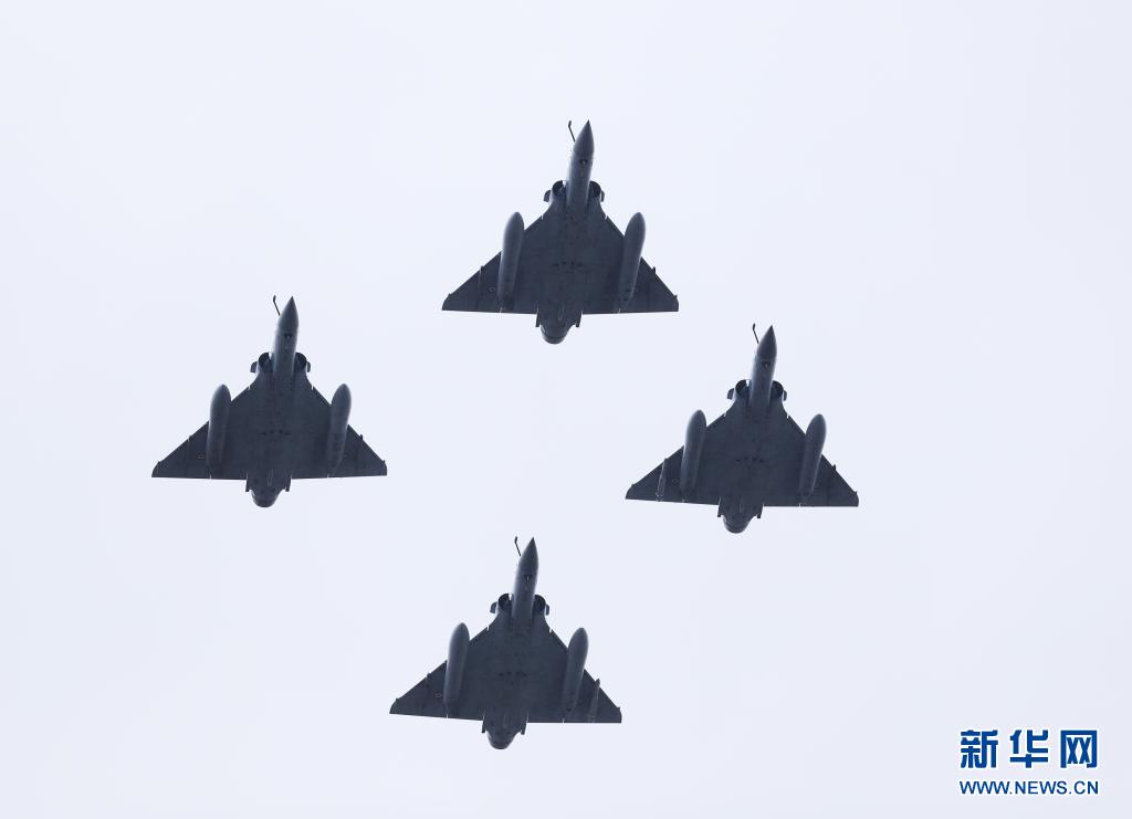 這是7月14日在法國巴黎協和廣場國慶閱兵式現場拍攝的戰斗機編隊。