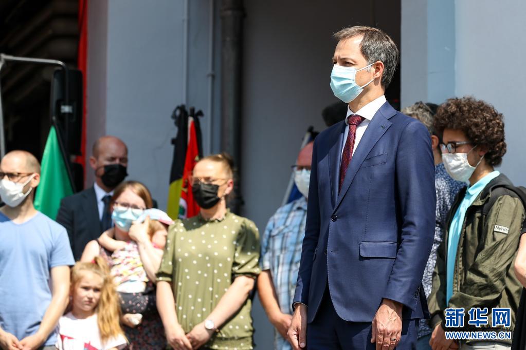 7月20日,比利時首相德克羅(前)在南部城市韋爾維耶出席悼念儀式。