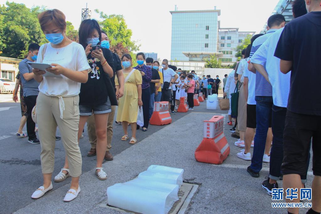 江蘇省南京市于7月21日開始對全市常住人口、外來人員開展全員核酸檢測。目前正值盛夏,氣溫較高,在南京市第一醫院河西院區核酸檢測點,工作人員專門為排隊等候的市民準備了冰塊降溫。