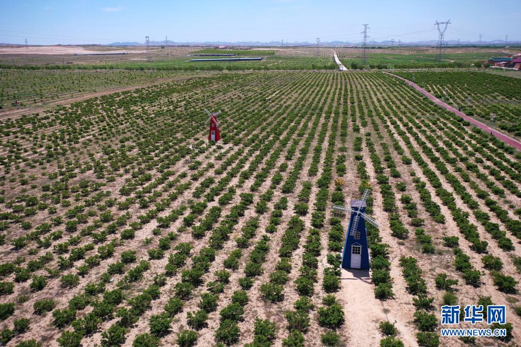 這是寧夏同心縣圣峰休閑生態觀光園內的玫瑰觀光區(6月22日攝,無人機照片)。新華社記者 楊植森 攝