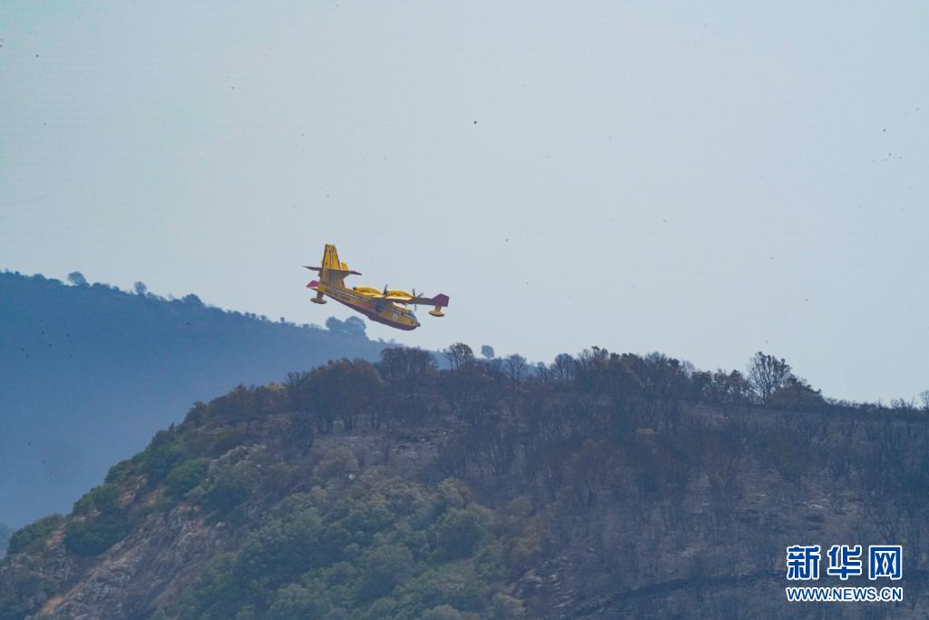 7月26日,滅火飛機在意大利撒丁島奧里斯塔諾參與滅火作業。