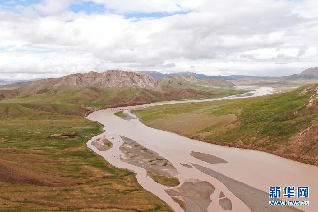 這是7月25日拍攝的長江干流通天河起點囊極巴隴(無人機(jī)照片)。
