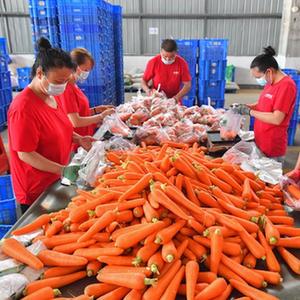 8月1日,在位于長沙市望城區的湖南高星物流園,蔬菜倉庫的工作人員在分揀胡蘿卜。