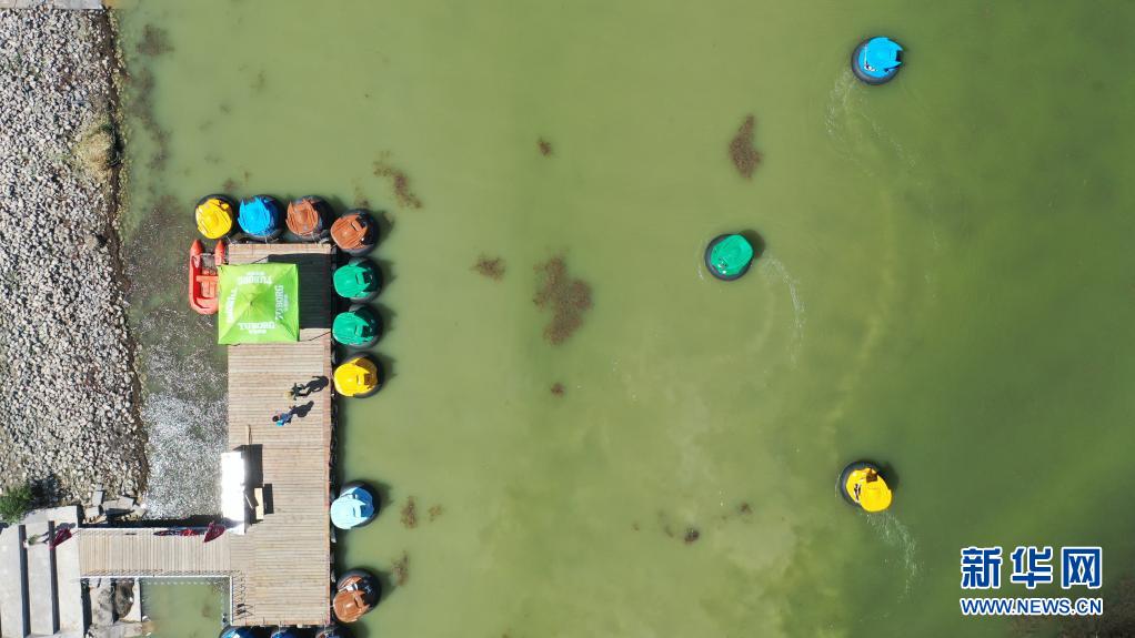 夏日時節,地處寧夏石嘴山市平羅縣的沙湖景區內,葦綠沙黃、碧波蕩漾。