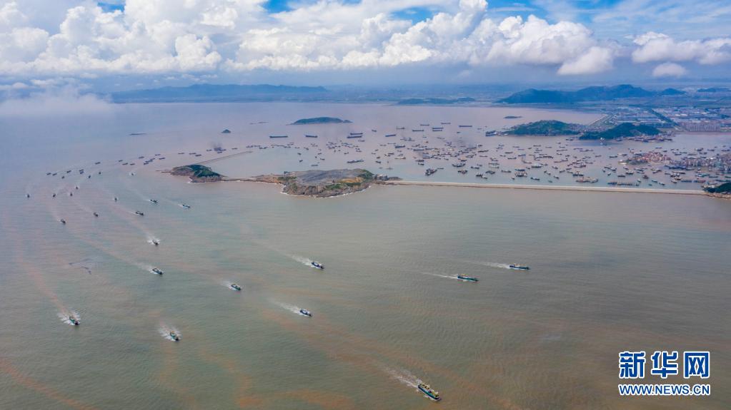 當日中午12時,浙江沿海地區的部分漁船結束伏季休漁,駛出漁港,奔赴漁場。