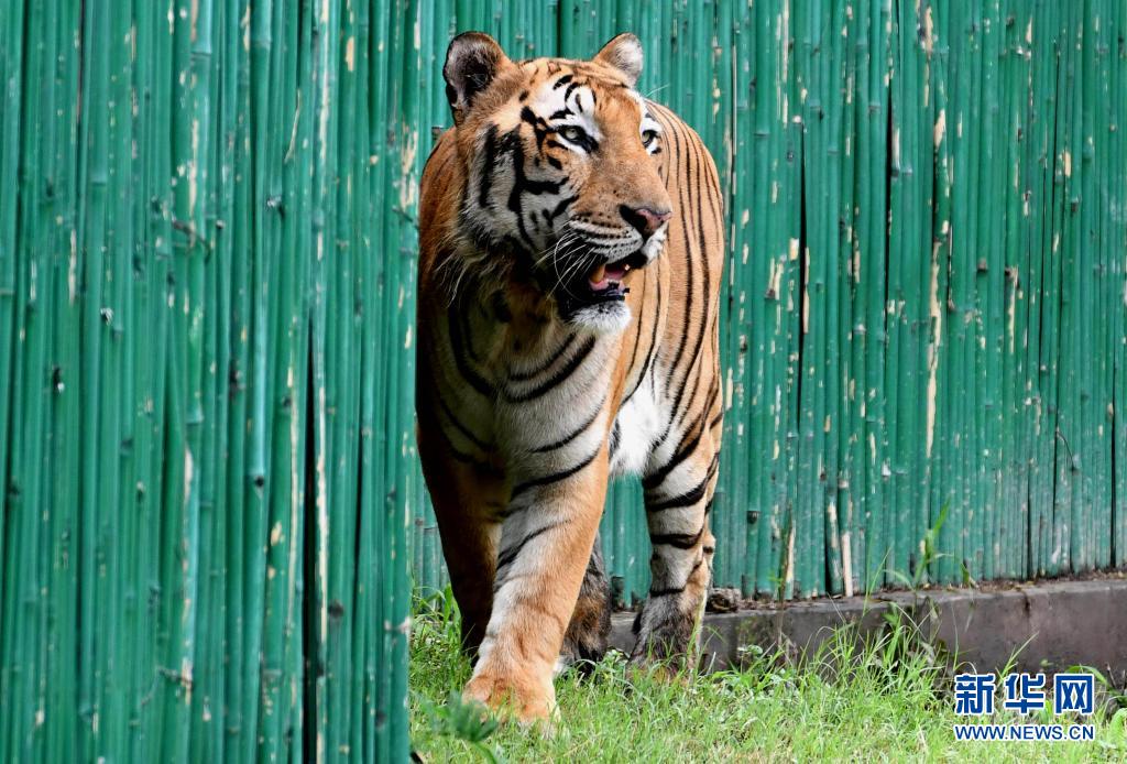 這是8月1日在印度新德里動物園拍攝的孟加拉虎。