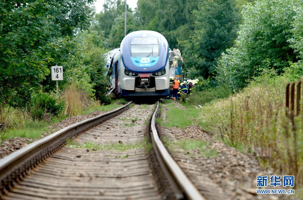 這是8月4日在捷克比爾森州拍攝的火車相撞事故現(xiàn)場。