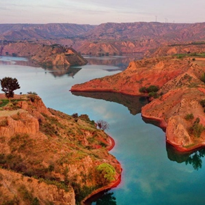 陜西省靖邊縣龍洲鎮波浪谷丹霞景區地處陜北黃土高原,峽谷四面環山,線谷、巷谷、絕壁等構成了特有的波浪形砂巖地貌,景觀獨特。